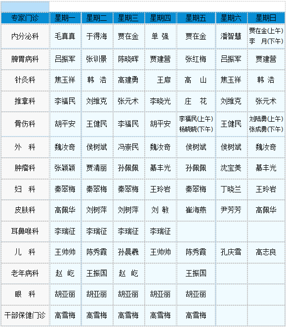 滨州市中医医院2021年6月28日-7月4日门诊值班表