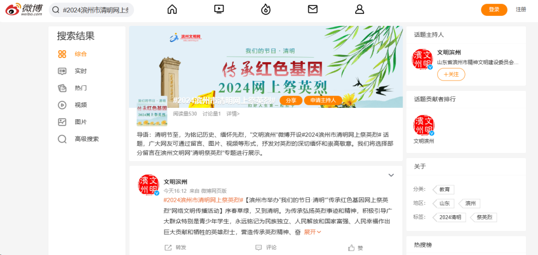 登录新浪微博→“文明滨州”微博