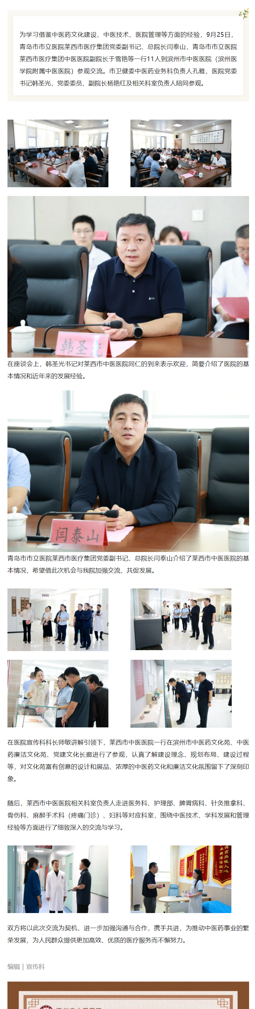 莱西市中医医院一行来我院参观交流