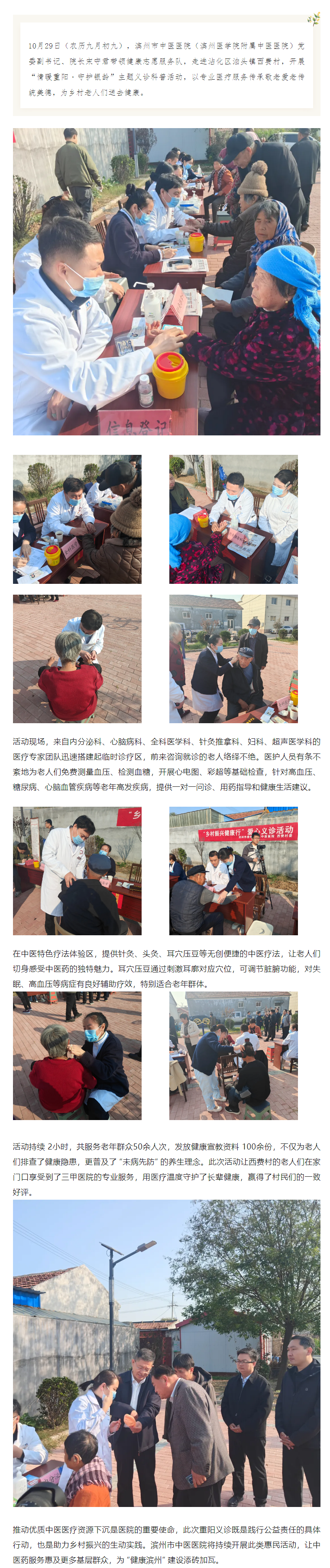 中医融入生活|情暖重阳 医护下乡 —— 滨州市中医医院赴沾化区泊头镇西费村开展义诊科普活动