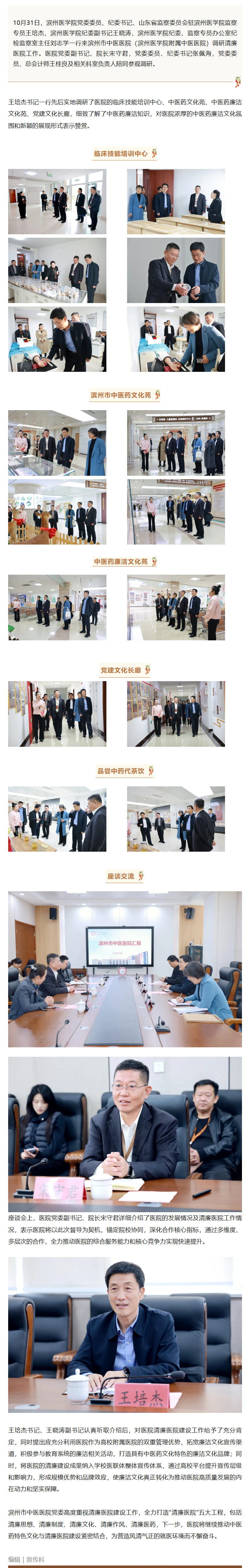 滨州医学院党委委员、纪委书记王培杰一行来我院调研清廉医院工作