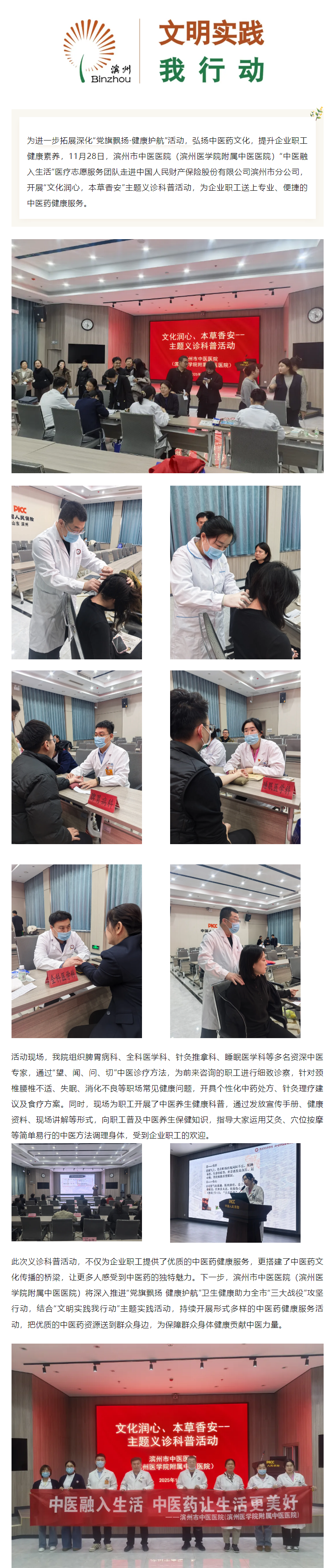 中医融入生活 | 党旗飘扬 健康护航——滨州市中医医院走进中国人民财产保险股份有限公司滨州市分公司开展义诊科普活动
