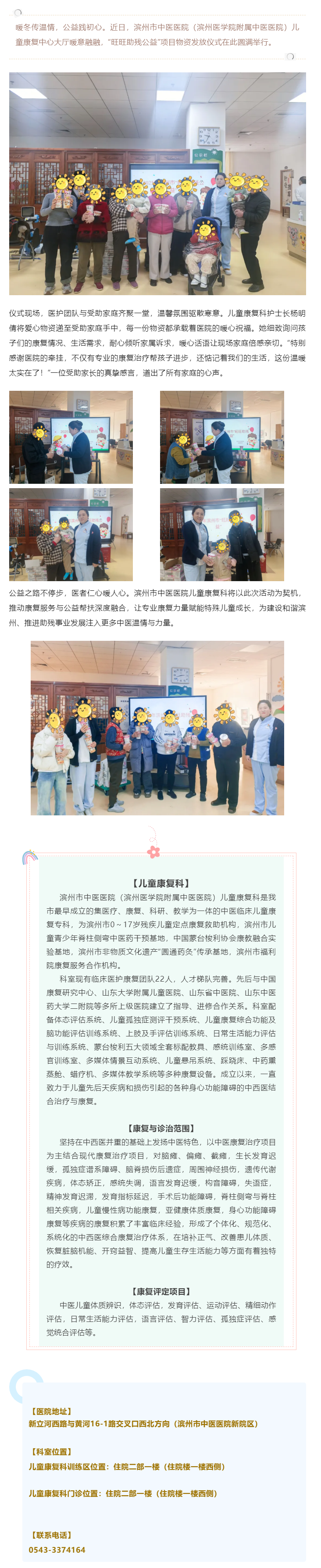 爱心暖滨州,助残护成长——滨州市中医医院(滨州医学院附属中医医院)儿童康复科“旺旺助残公益”发放仪式圆满举行