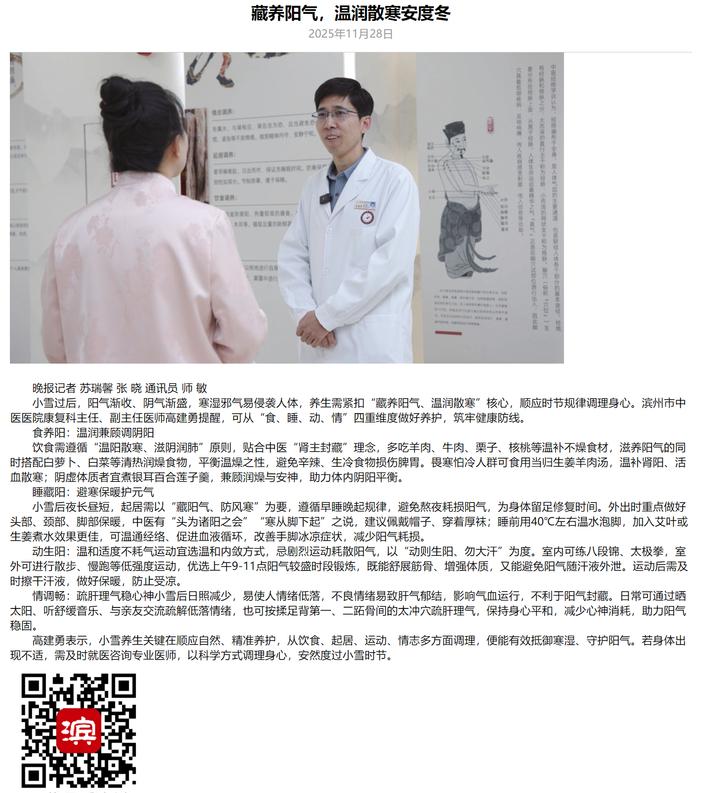 【鲁北晚报】二十四节气之小雪 藏养阳气,温润散寒安度冬
