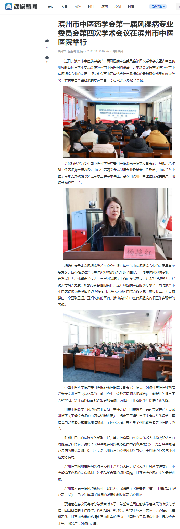 【海报新闻】滨州市中医药学会第一届风湿病专业委员会第四次学术会议在滨州市中医医院举行