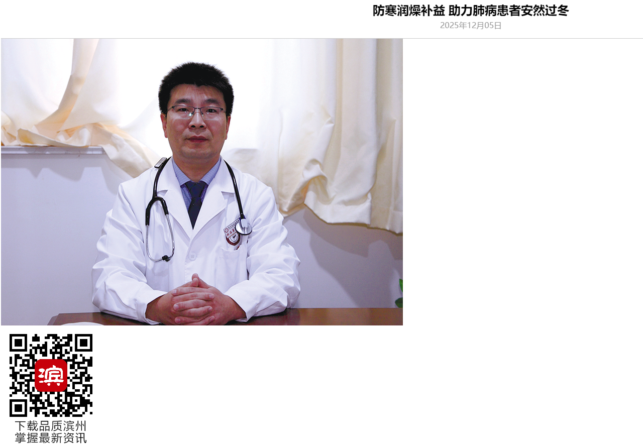 【鲁北晚报】防寒润燥补益 助力肺病患者安然过冬