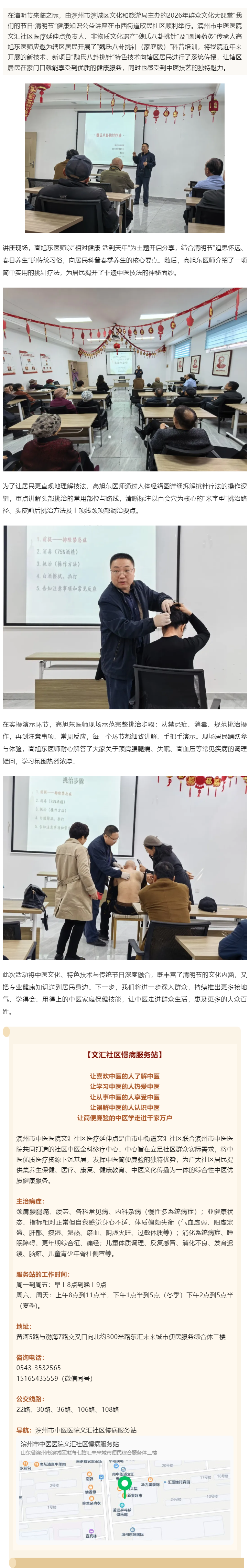 新技术“魏氏八卦挑针”走进基层|我院文汇社区医疗延伸点高旭东医师应邀在市西街道欣民社区科普挑针特技