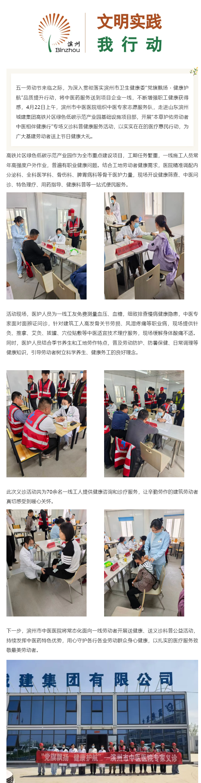 中医融入生活 | 党旗飘扬 健康护航——滨州市中医医院走进山东滨州城建集团高铁片区绿色低碳示范产业园基础设施项目部开展义诊科普活动