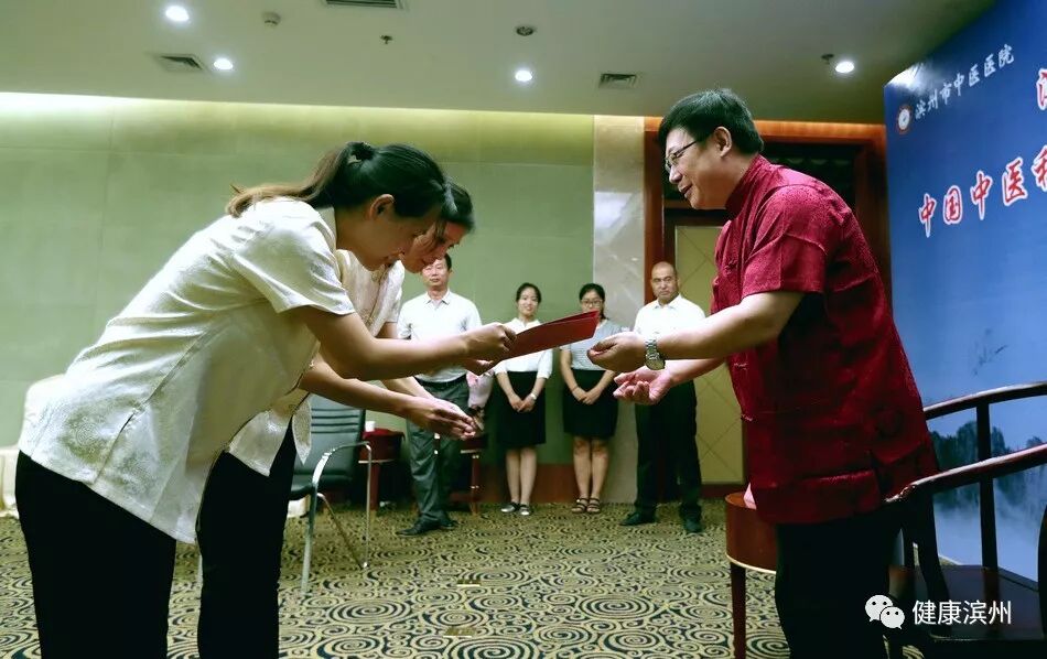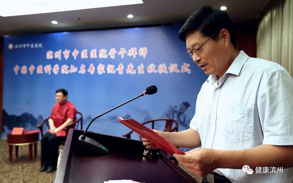 本次仪式由滨州市中医药管理局副局长高金昌同志主持。中国中医科学院中医药发展研究中心常务副主任苏庆民教授,中国中医科学院广安门医院内分泌科主任倪青教授,中国中医科学院西苑医院中医药研究中心主任寇秋爱教授,中国中医科学院广安门医院推拿科副主任医师王立军教授,滨州市卫生计生委党组书记、主任,中医药管理局局长商秀丽同志,滨州市卫生计生委党组成员、副调研员方衍勇同志以及滨州市中医医院的领导班子参加了拜师仪式。