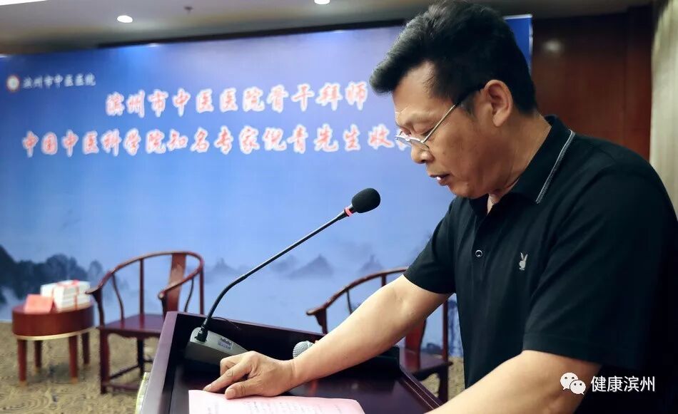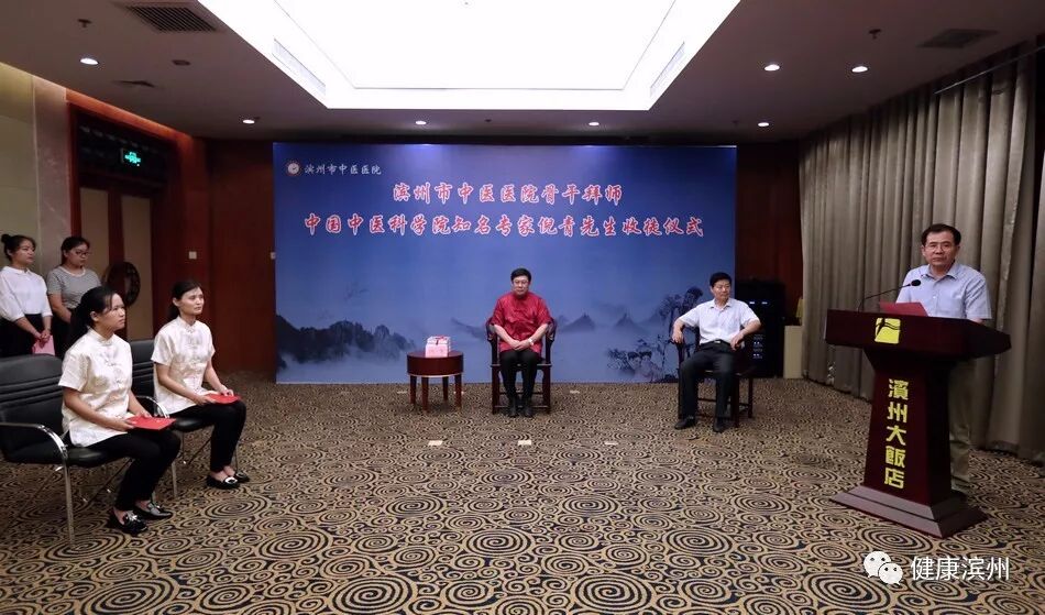 为更好地传承发扬中医名医名家的学术思想,进一步加强中医药人才队伍建设,决胜全面建设健康滨州,2018年7月6日,滨州市中医医院在滨州大饭店举行滨州市中医医院骨干向中国中医科学院专家倪青先生拜师仪式。这是滨州市启动国家级名中医工作室建设项目以来的第四次拜师活动。