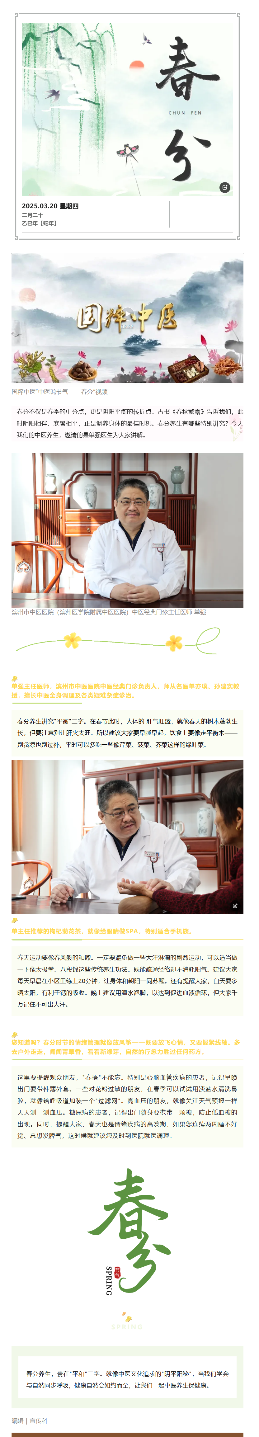 国粹中医·节气养生 | 中医说节气——春分 滨州市中医医院(滨州医学院附属中医医院)中医经典门诊主任医师 单强