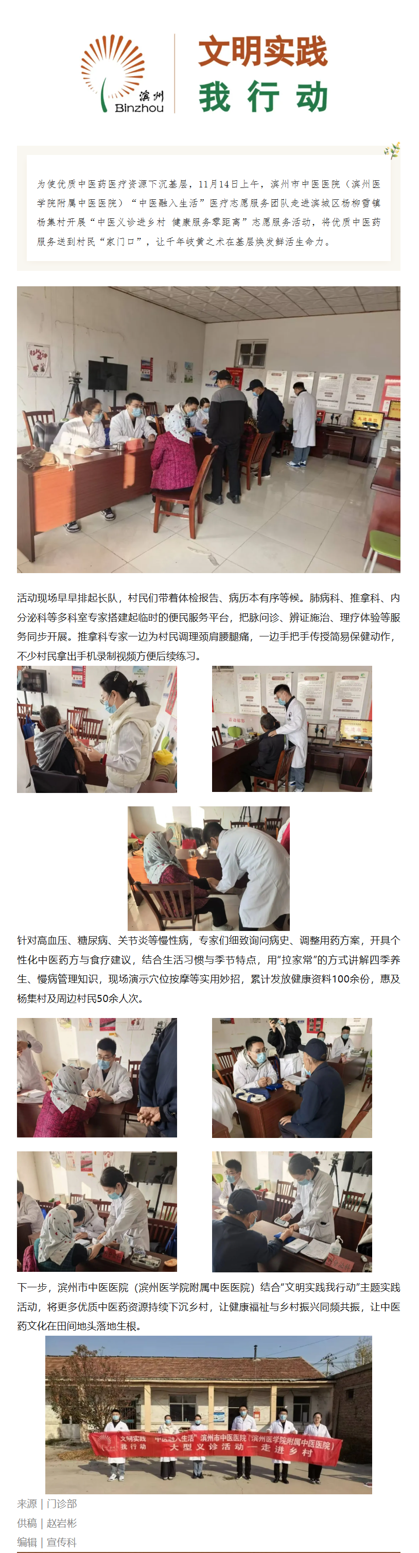 中医融入生活 | 滨州市中医医院走进滨城区杨柳雪镇杨集村开展义诊科普活动