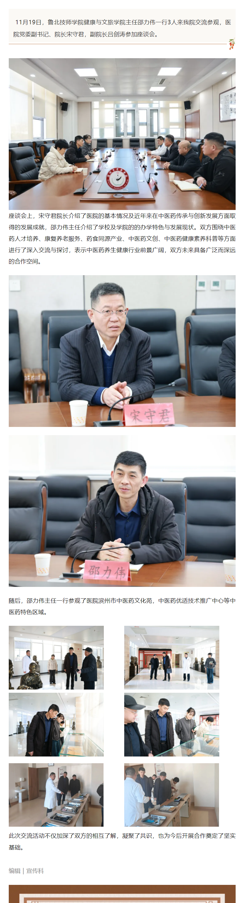 鲁北技师学院健康与文旅学院主任邵力伟一行来我院交流参观