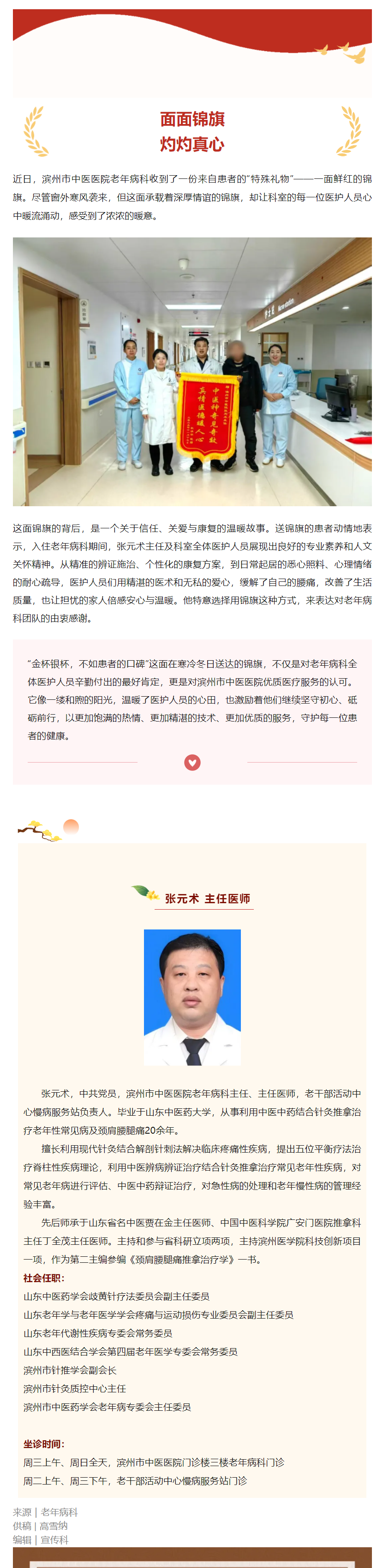 一面锦旗一份情,寒冬时节暖意浓——老年病科收到患者锦旗