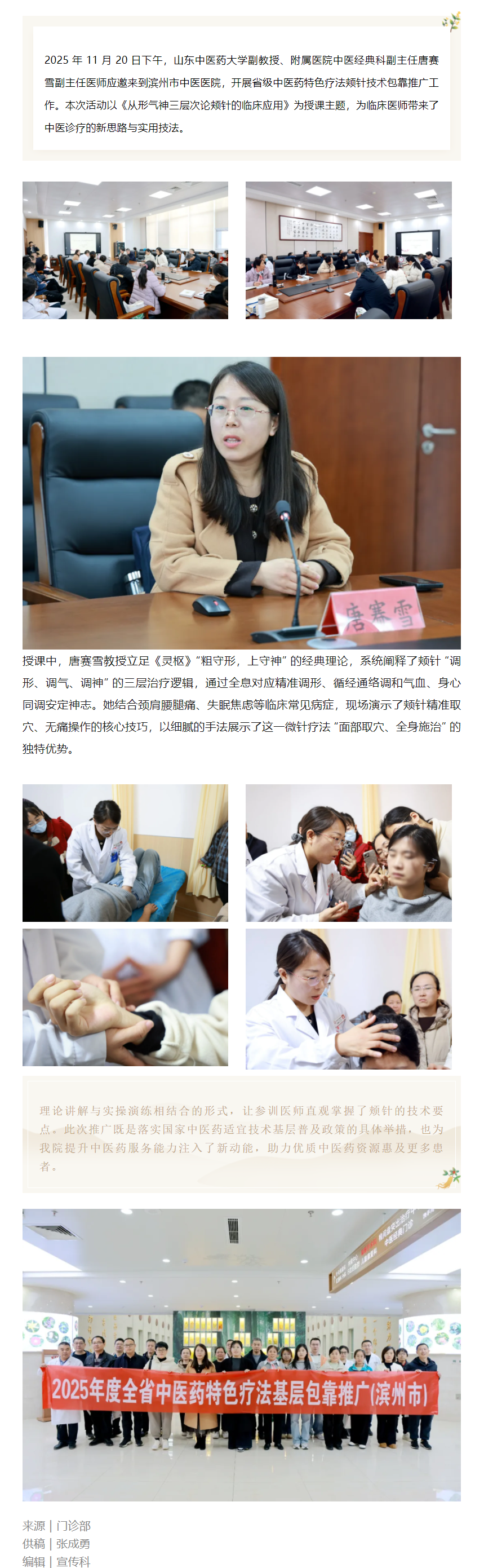 2025年度全省中医药特色疗法基层包靠推广工作培训(滨州市)在滨州市中医医院举行