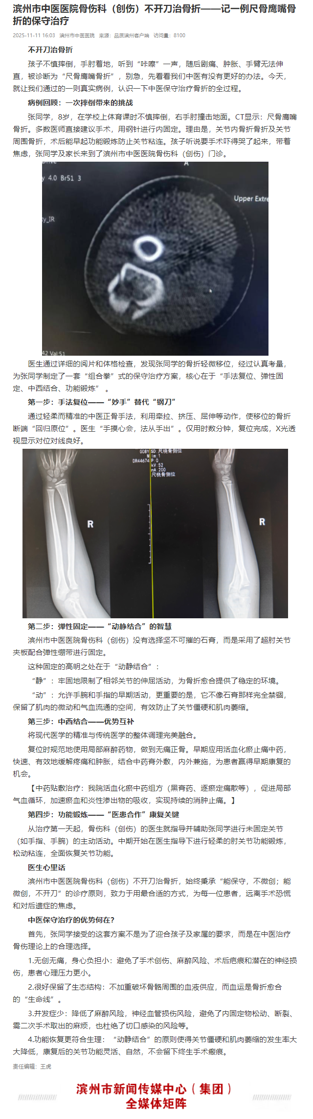 【品质滨州】滨州市中医医院骨伤科(创伤)不开刀治骨折——记一例尺骨鹰嘴骨折的保守治疗