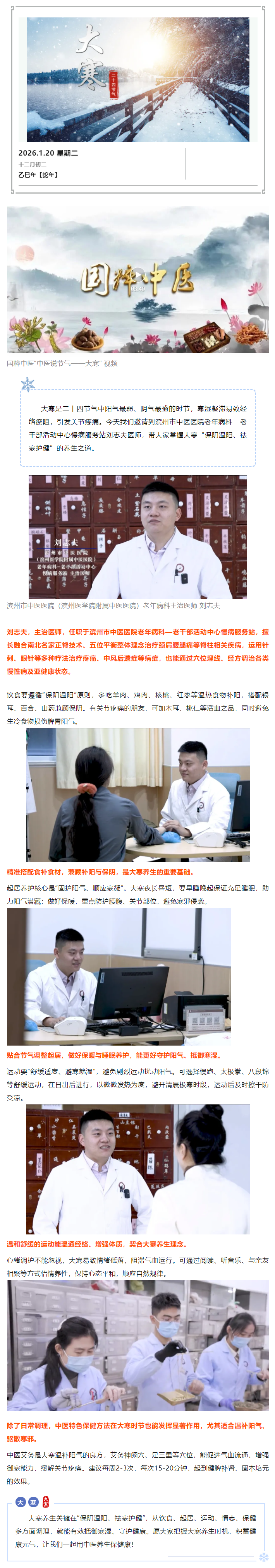 国粹中医 · 节气养生 | 中医说节气—大寒 滨州市中医医院(滨州医学院附属中医医院)老年病科 主治医师 刘志夫