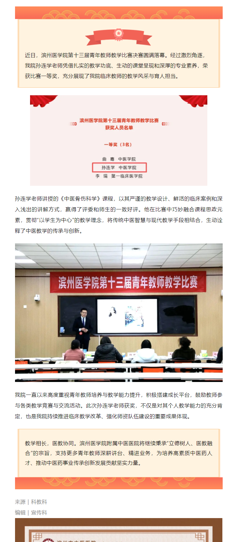 喜报 | 我院孙连学老师荣获滨州医学院第十三届青年教师教学比赛一等奖
