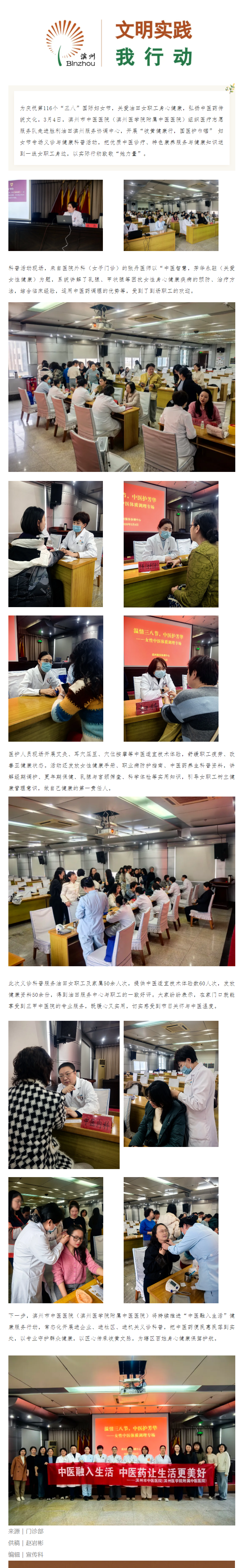 中医融入生活 | 滨州市中医医院走进胜利油田滨州服务协调中心开展“三八”妇女节主题义诊科普活动