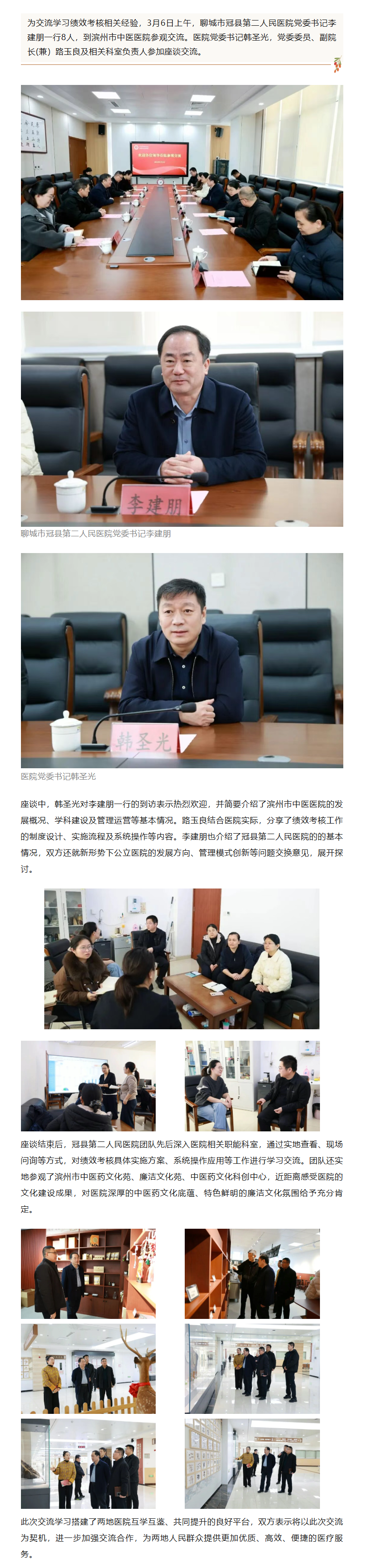 聊城市冠县第二人民医院一行到滨州市中医医院参观交流