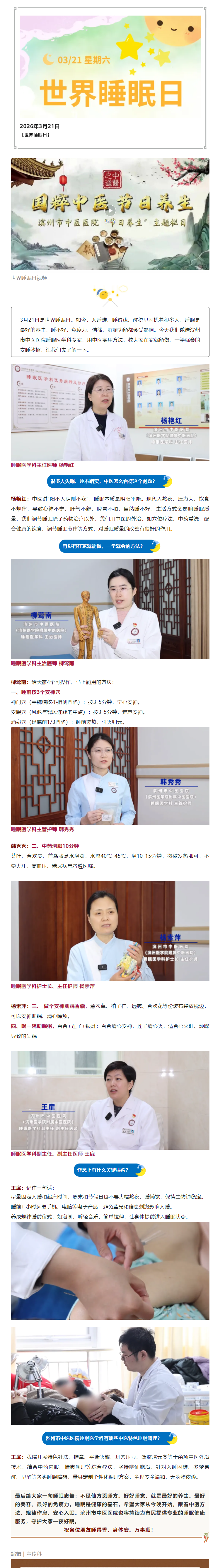 【点击观看视频】世界睡眠日|专访滨州市中医医院睡眠医学科:睡得好,才是真养生