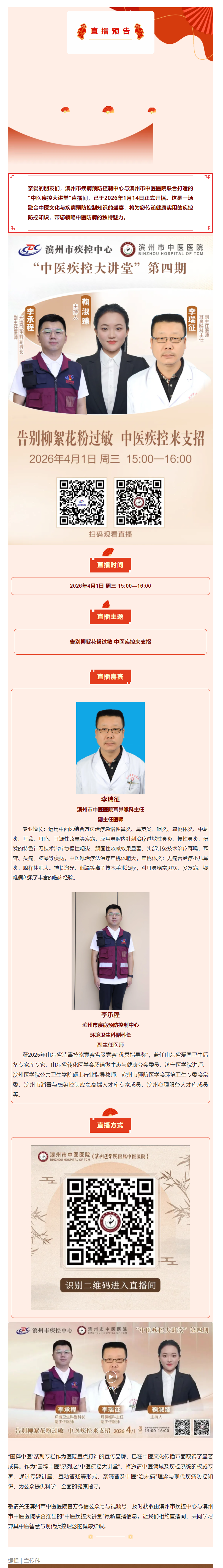 直播预告 | “中医疾控大讲堂”第四期——告别柳絮花粉过敏 中医疾控来支招