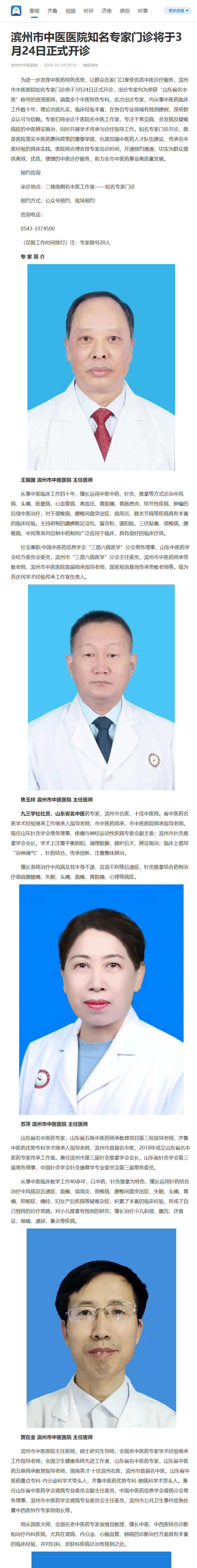 【海报新闻】滨州市中医医院知名专家门诊将于3月24日正式开诊