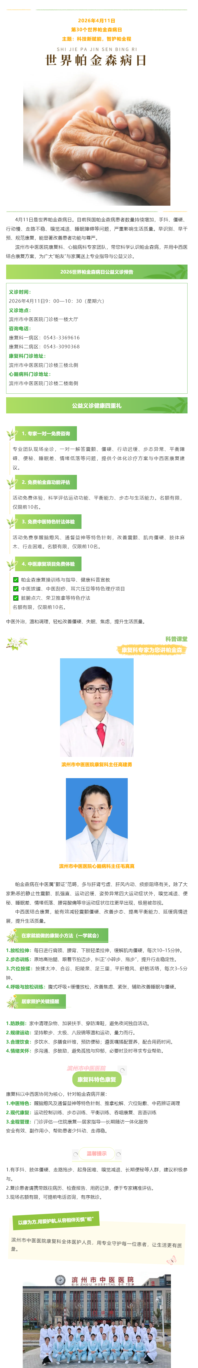 2026世界帕金森病日|4月11日周六上午滨州市中医医院公益义诊科普来啦!
